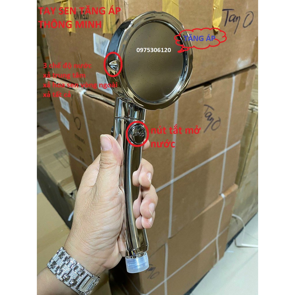 [CÓ NÚT TẮT MỞ NƯỚC ở tay cầm] BỘ Tay Sen Tắm Tăng Áp Vòi hoa sen TS13 và Dây Sen và Cài Sen có 3 chế độ xả nước
