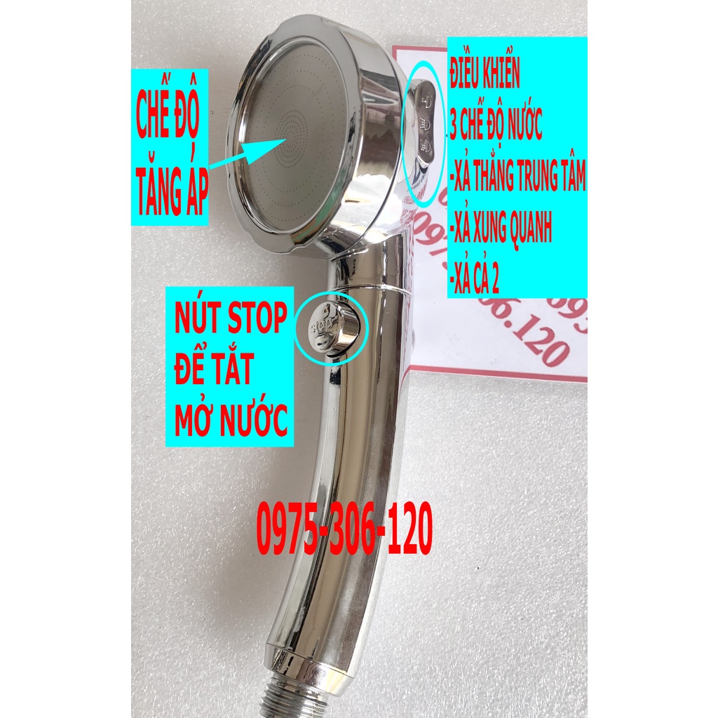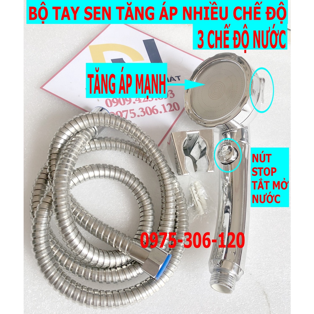 [CÓ NÚT TẮT MỞ NƯỚC ở tay cầm] Tay Sen Tắm Tăng Áp Vòi hoa sen TS13 và Dây Sen và Cài Sen có 3 chế độ xả nước