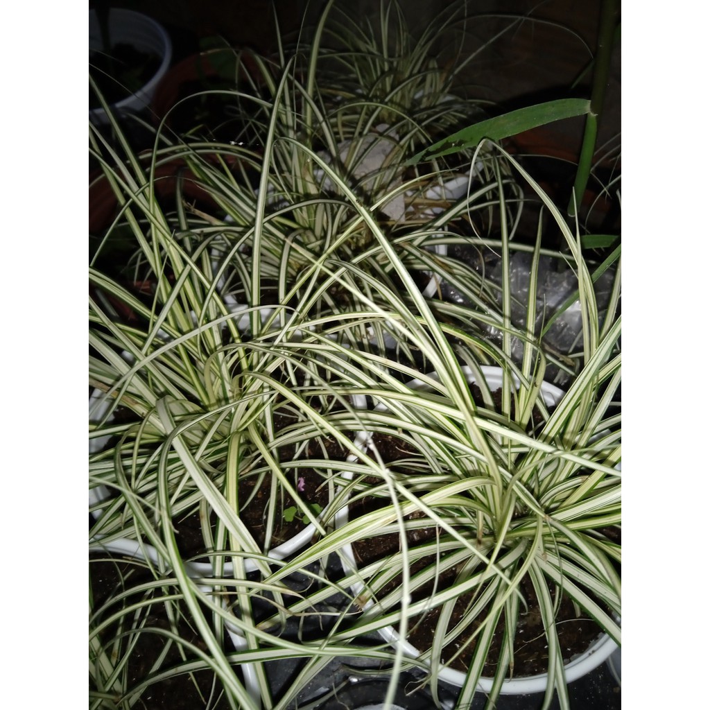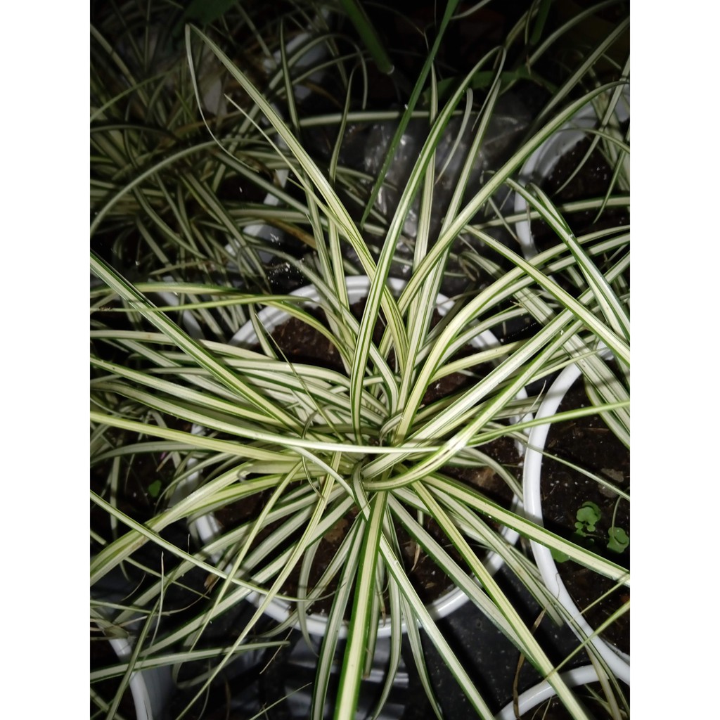 Là loại có có lá nhỏ, dài và sọc vàng dọc bẹ lá.Các lá khít nhau tạo thành cụm với những xúc tua xung quanh trông rất lạ mắt.