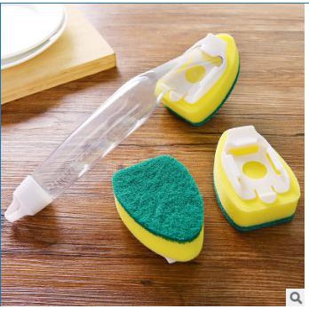 Giới thiệu Bộ cọ rửa bát có ống đựng xà phòng, có tay cầm bảo vệ da tay