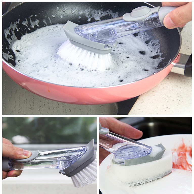 Giới thiệu Cọ rửa bát đa năng kèm bình chứa nước rửa