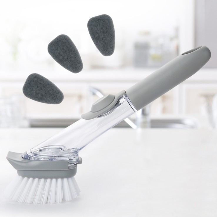 - Sử dụng dễ dàng: tháo miếng cọ, đổ nước rửa vào phần chứa ở tay cầm, lắp lại & không lo hết nước rửa.
