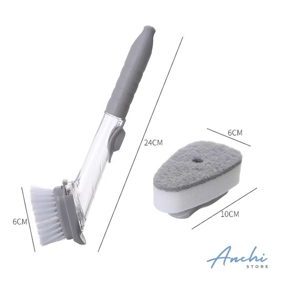 Giới thiệu Cọ rửa bát thông minh, cọ rửa chén tích hợp ống đựng xà phòng tay cầm dài tiện dụng Anchistore