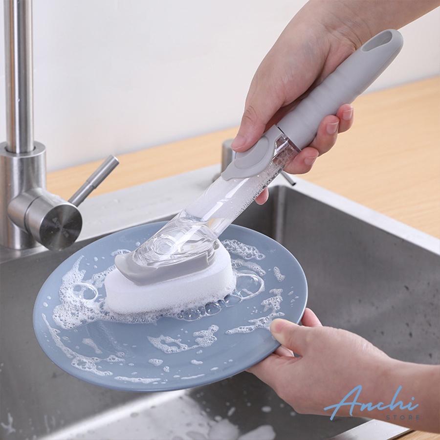 Cọ rửa bát thông minh, cọ rửa chén tích hợp ống đựng xà phòng tay cầm dài tiện dụng Anchistore