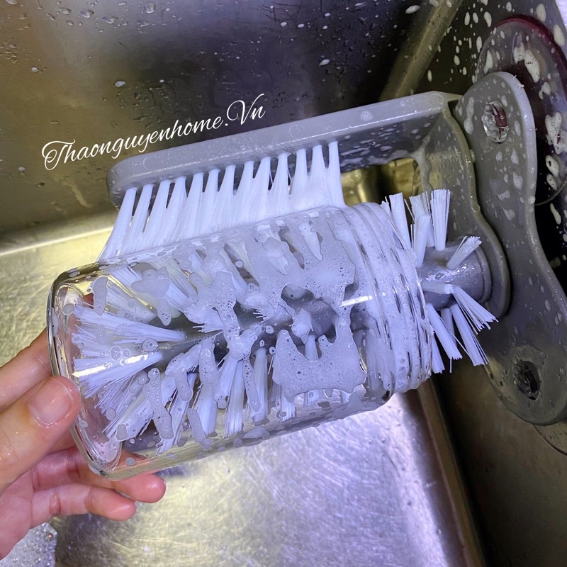 Dụng cụ cọ rửa bình ly cốc chén gắn bồn: rửa cả trong cả ngoài nhanh sạch tiện lợi, phần sâu trong cốc mà tay bạn không với vào đượcBạn có thể dán vào thành bồn