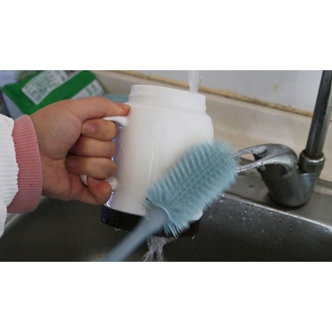 - Dụng cụ cọ bình được thiết kế đặc biệt với cọ lông nhựa TPR đầu gai dày và mềm , dễ dàng đánh bay cặn bám mà ko làm trầy xước bình .
