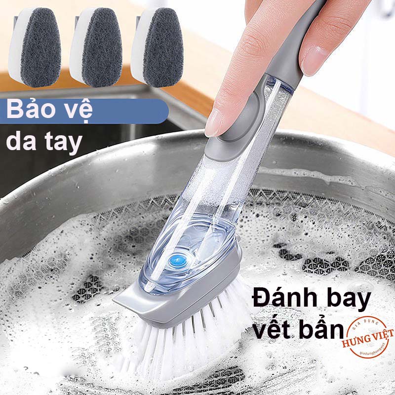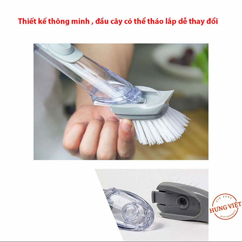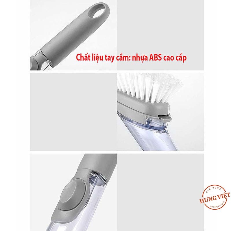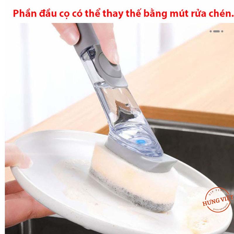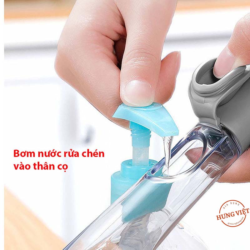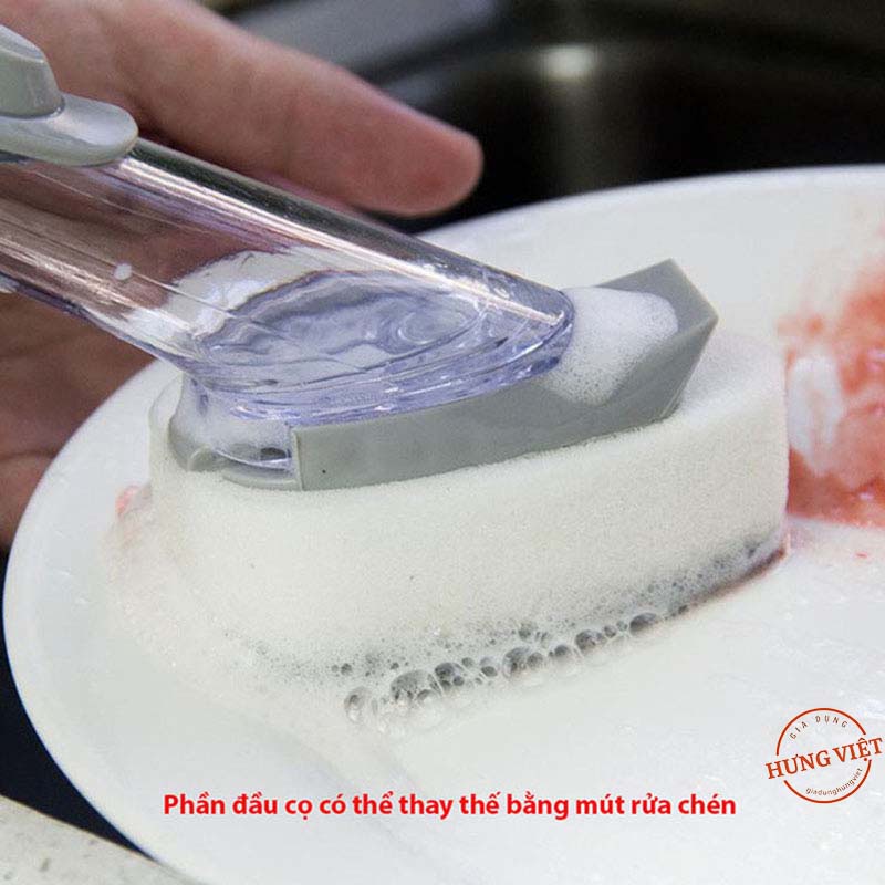 - Thân cọ dài, thiết kế đặc biệt: Chỉ cần cho nước rửa chén vào ngăn trên thân cọ, ấn nút bạn thể rửa sạch cả sân bát đĩa nhanh hơn, sạch hơn, tiết kiệm nước rửa chén hơn mà