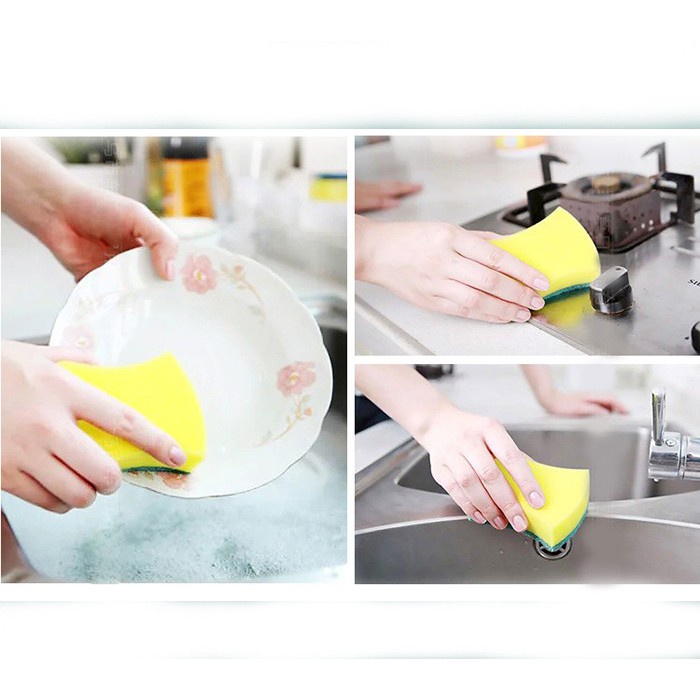 ♘ Miếng rửa chén làm bằng chất liệu không xơ cứng, không gây trầy bề mặt chén đĩa. Giúp chén đĩa của bạn không chỉ sạch mà còn bền đẹp hơn.