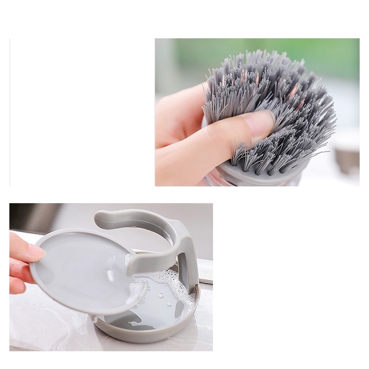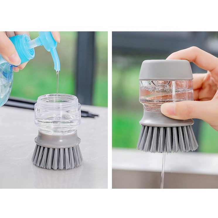 - Bên trên phần cọ có kèm hộp đựng nước rửa bát tiện dụng, không cần lấy nước rửa bát nhiều lần.
