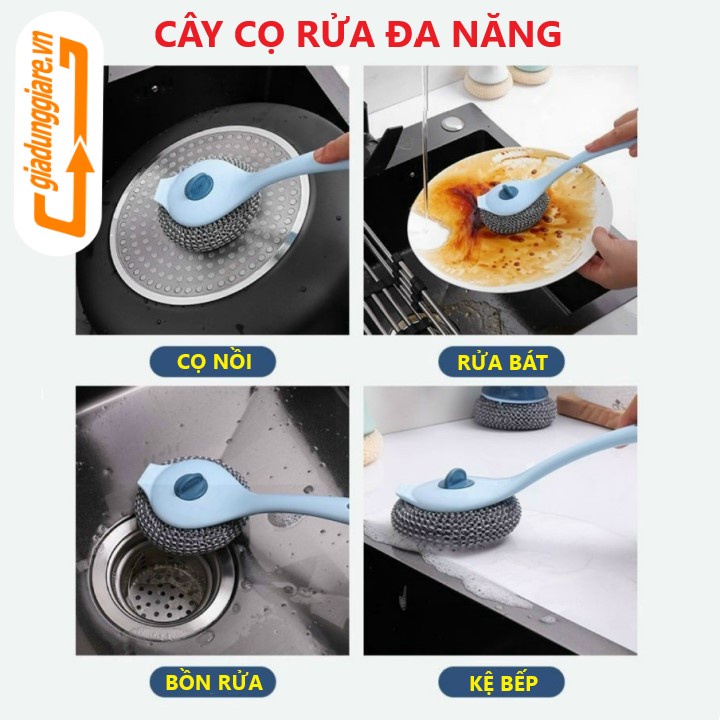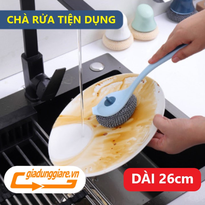 Cây cọ rửa ĐA NĂNG kèm búi lưới cán dài 27cm dụng cụ chà xoong nồi rửa chén bát kệ bếp bồn rửa cọ nền
