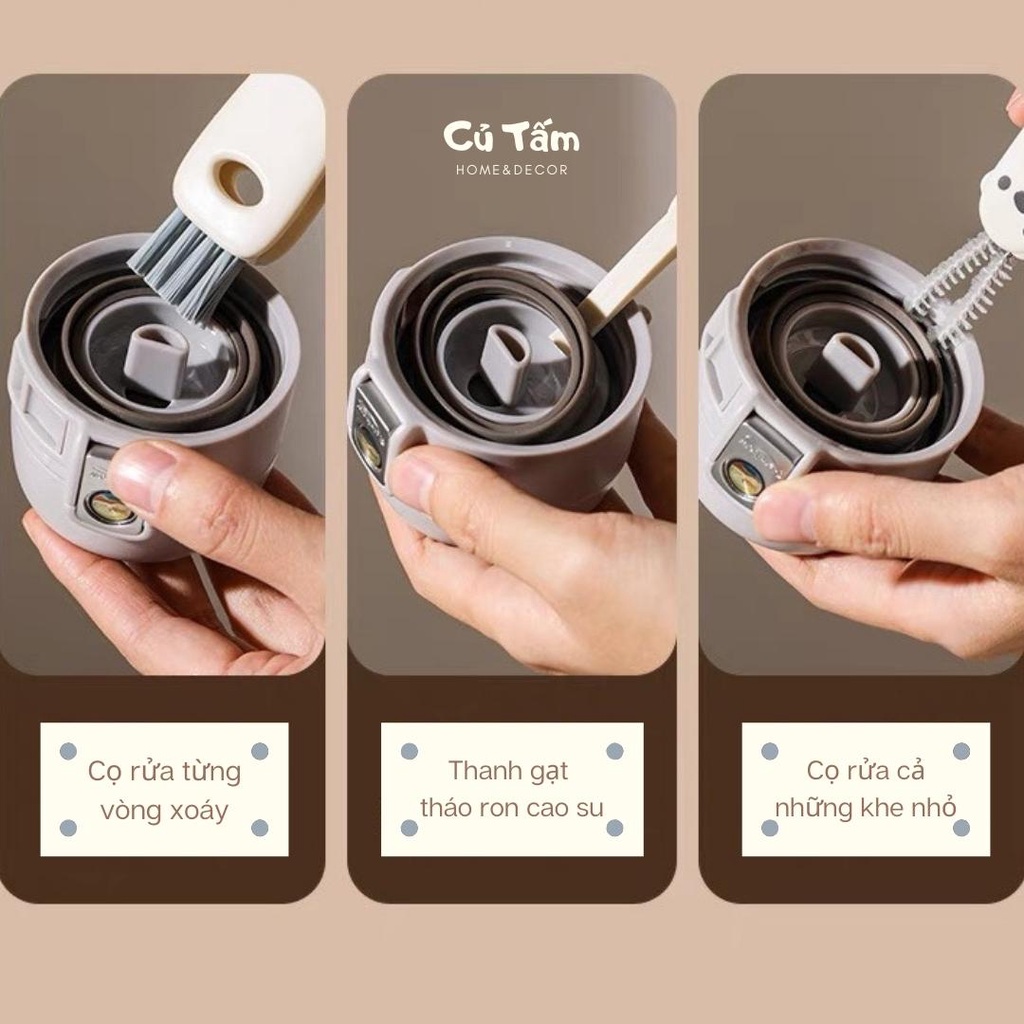 - Cọ rửa bình có 3 chi tiết thông minh, làm sạch từ những khe nhỏ nhất: