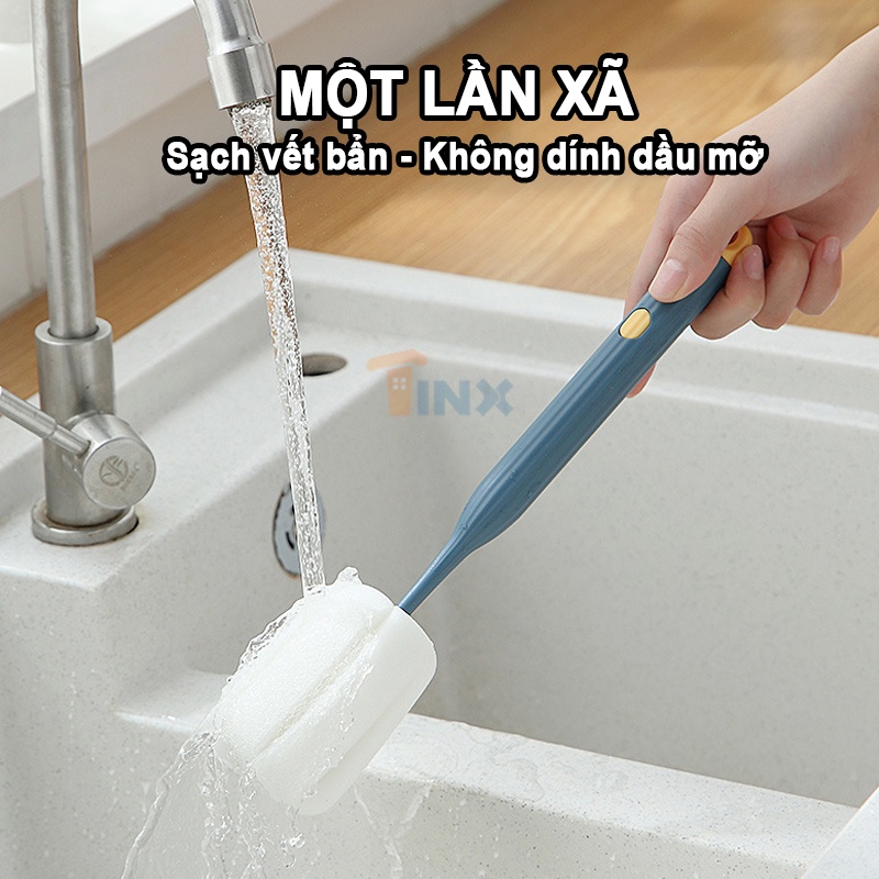 Nhà cửa & Đời sống > Dụng cụ chăm sóc nhà cửa > Miếng bọt biển, miếng chà vệ sinh || Cọ rửa ly cốc, bình sữa đa năng có đầu mút tạo bọt biển tay cầm dài xoay 360 độCòn hàng