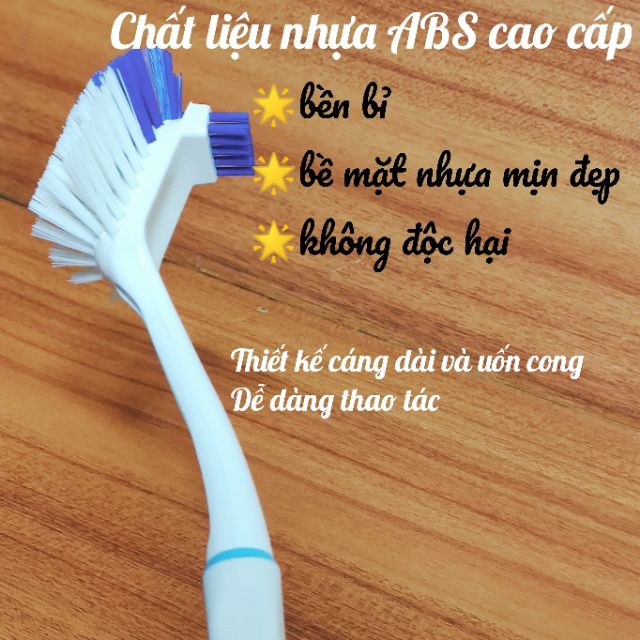 + Thiết kế kiểu dáng gọn nhẹ, đầu chà dạng dài dễ dàng len lỏi vào các khe và thành toilet.