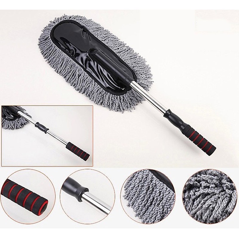 - Với chổi cán dài: Cán chổi có thể kéo dài hay thu gọn rất tiện lợi, giúp cho công việc lau chùi xe trở nên dễ dàng hơn.