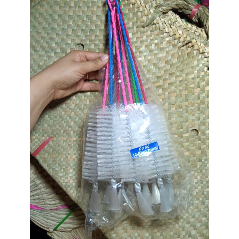 ✓ Một đầu tay cầm là những sợi nhựa tổng hợp đan xen đều nhau, có độ đàn hồi tốt. Sản phẩm có tính năng sử dụng lâu bền, hạn chế gẫy mục đầu lông chải, dễ cầm nắm và thao tác.