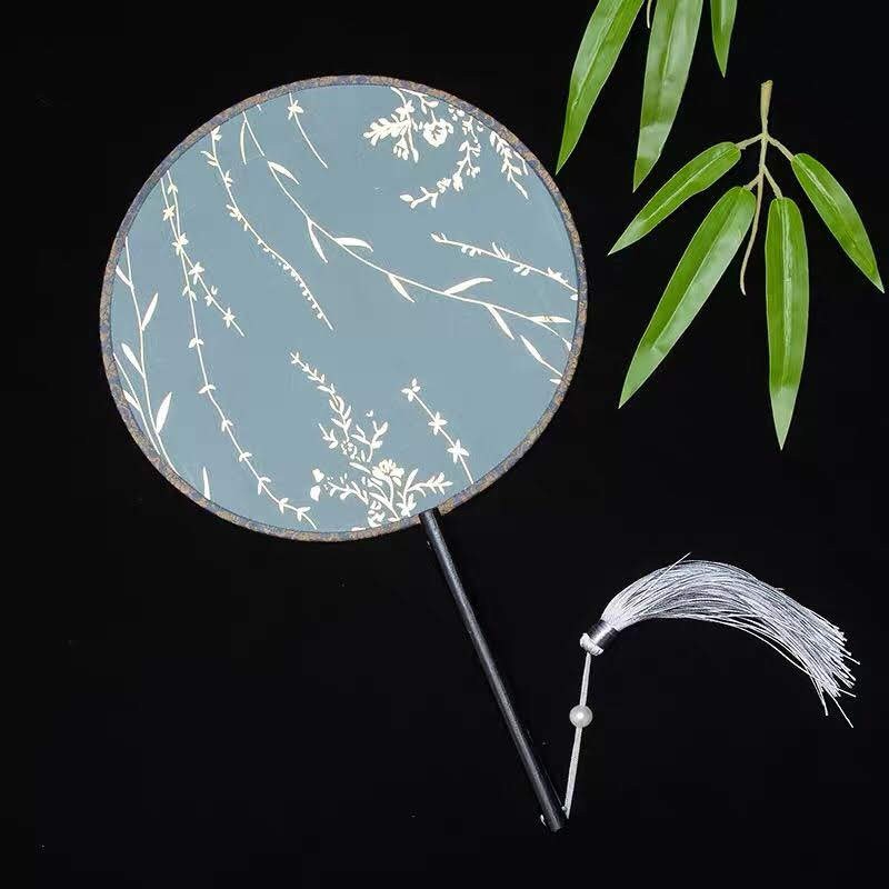 Quạt tròn cổ trang có sẵn y như hình, có ba màu: đỏ, trắng, xanh nhạt. tay cầm gỗ chắc chắn. bề mặt là vải căng trong suốt có in hình lá kim. đường kính 21cm, tay cầm dài 12cm, hàng chắc chắn, chuyên để múa cổ trang