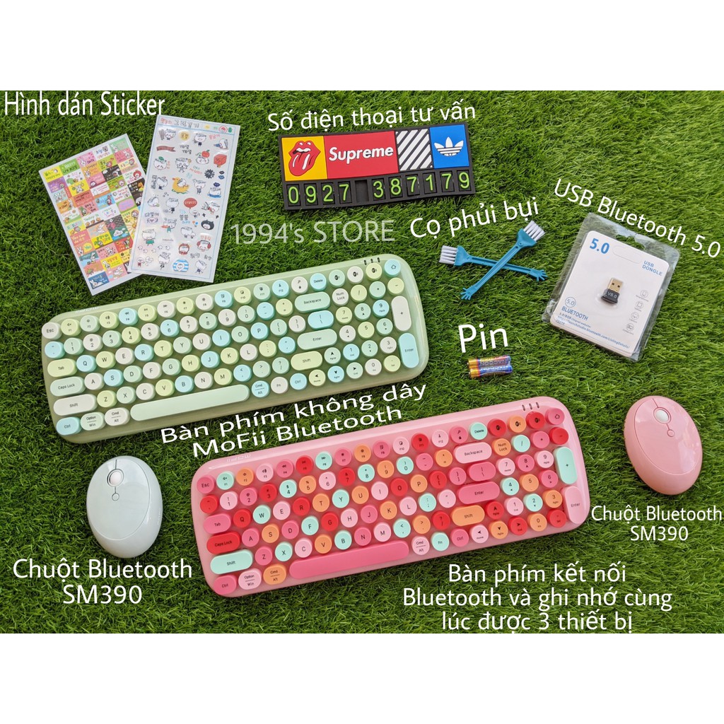 🔥 Còn nếu các bạn không thích dùng Bluetooth thì có bộ combo bàn phím và chuột Mofii Candy XR sẽ dùng Wireless 2.4Ghz (sử dụng USB) sẽ được tặng kèm bộ Sticker hình dán dễ thương và cọ phủi bụi cho bàn phím