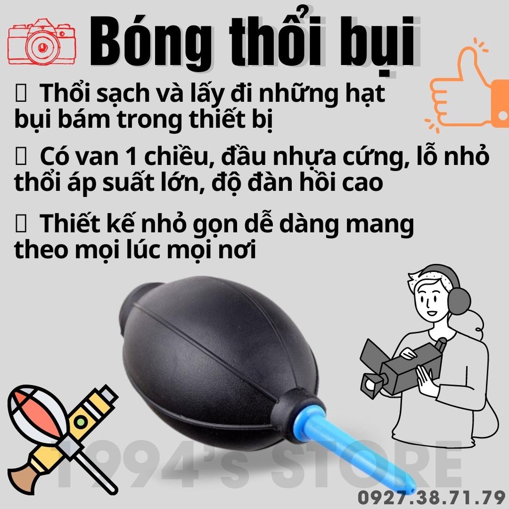 🔥 Bóng thổi bụi giúp thổi sạch và lấy đi được những hạt bụi bám trong máy ảnh, ngoài ra bạn cũng có thể sử dụng bóng thổi bụi đối với bàn phím máy tính, màn hình, camera....Với thiết kế nhỏ gọn, bóng cao su đàn hồi êm nhẹ giúp sử dụng thoải mái và dễ dàng mang theo.