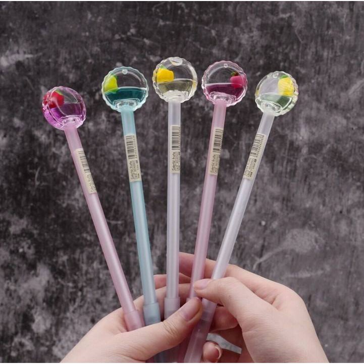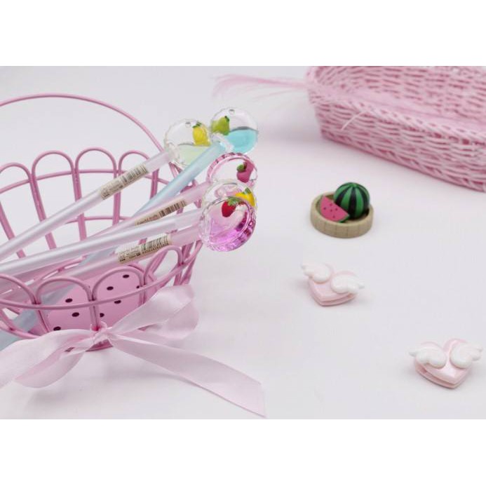 - Phần đuôi bút có kèm theo cái em Charm rất là dễ thương, bơi lội tung tăng bên trong 1 chiếc chuông nhỏ siêu đáng yêu <3 Vưa viết vừa nghịch <3