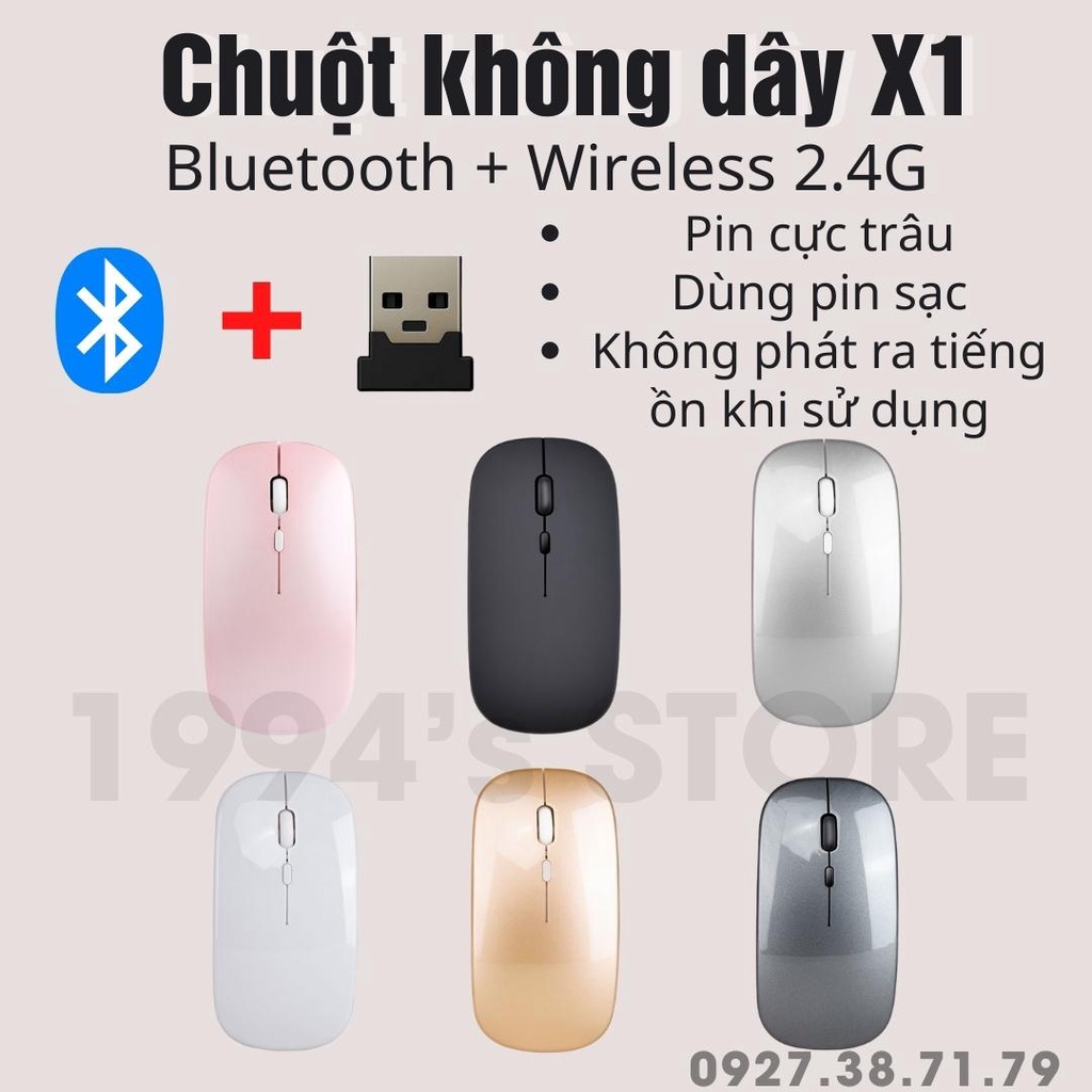 Máy tính & Laptop > Chuột & Bàn Phím > Chuột Máy Tính || (CÓ SẴN) Chuột Không Dây X1 Bluetooth 5.1 và Wireless 2.4G Nhỏ Gọn, Nhẹ, Dùng Pin Sạc, Không Âm ThanhCòn hàng