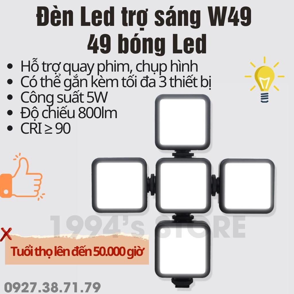 🔥 Đèn W49 với 49 Led trợ sáng cho việc quay phim, chụp ảnh🔵 Là đèn Led cho máy ảnh, điện thoại, nhỏ gọn, có khả năng gắn kèm tối đa 03 thiết bị phụ kiện như mic thu âm, đèn led video hoặc monitor…..với 3 khe cắm phụ trên thân đèn.