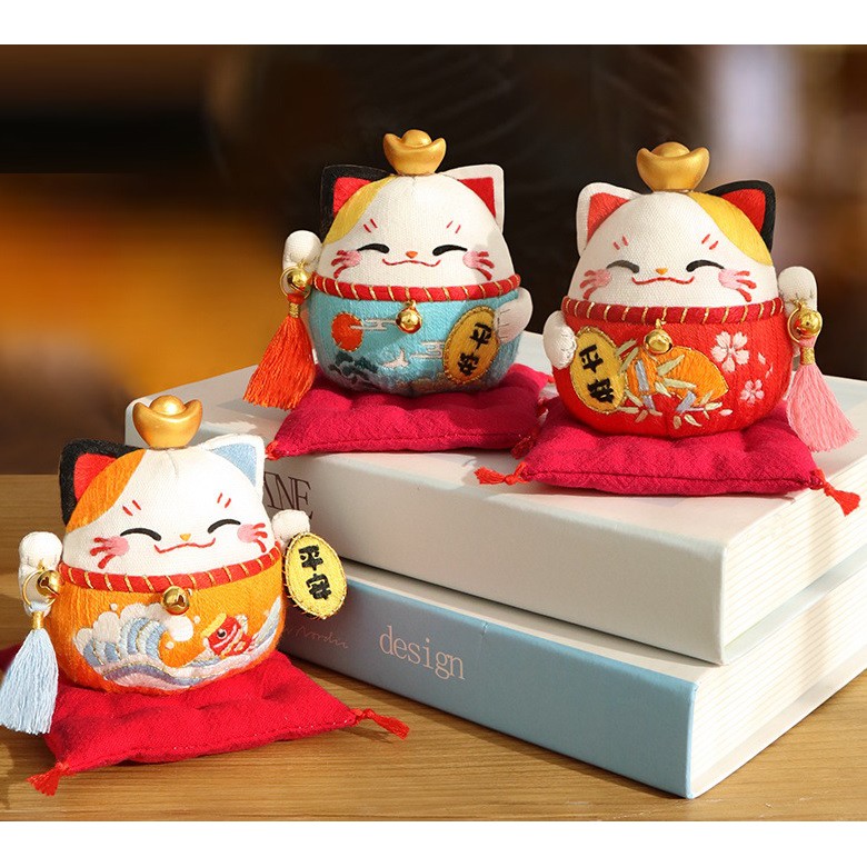 [ CÓ SẴN ] DIY / BỘ KIT THÊU MÈO MANEKI NEKO DỄ THƯƠNG