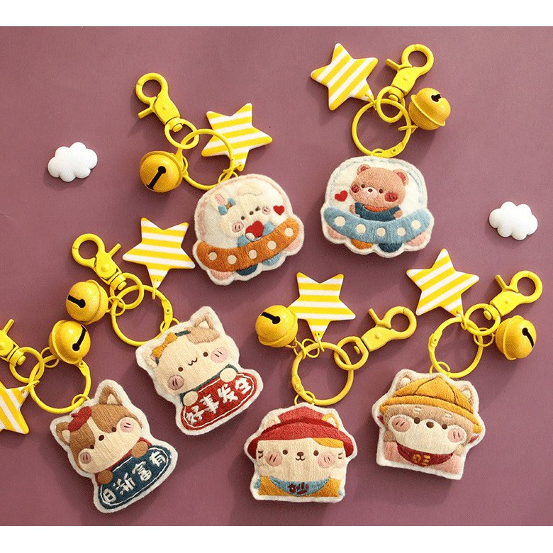 [ CÓ SẴN ] DIY / BỘ KIT TỰ THÊU MÓC KHOÁ COUPLE HOẠT HÌNH DỄ THƯƠNG.