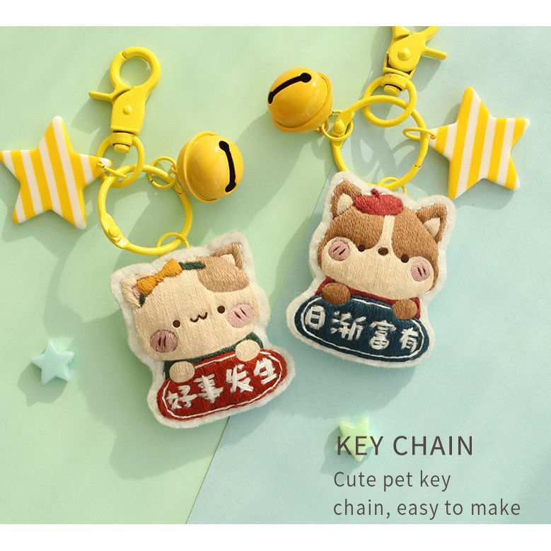 [ CÓ SẴN ] DIY / BỘ KIT TỰ THÊU MÓC KHOÁ COUPLE HOẠT HÌNH DỄ THƯƠNG