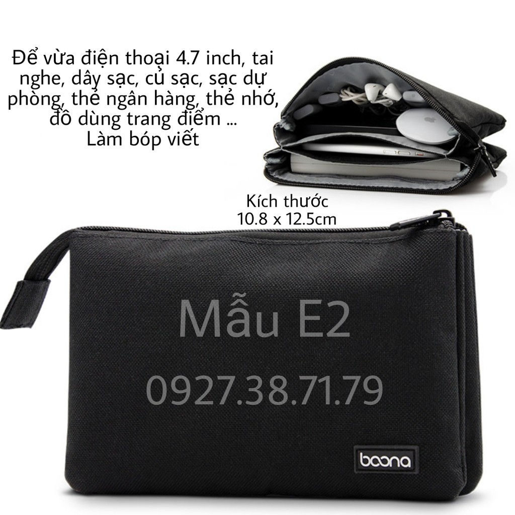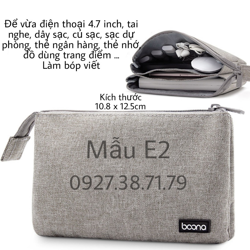 4. Túi BOONA E2 Để vừa điện thoại 4.7 inch, tai nghe, dây sạc, củ sạc, sạc dự phòng, thẻ ngân hàng, thẻ nhớ, đồ dùng trang điểm, làm bóp viết ...
