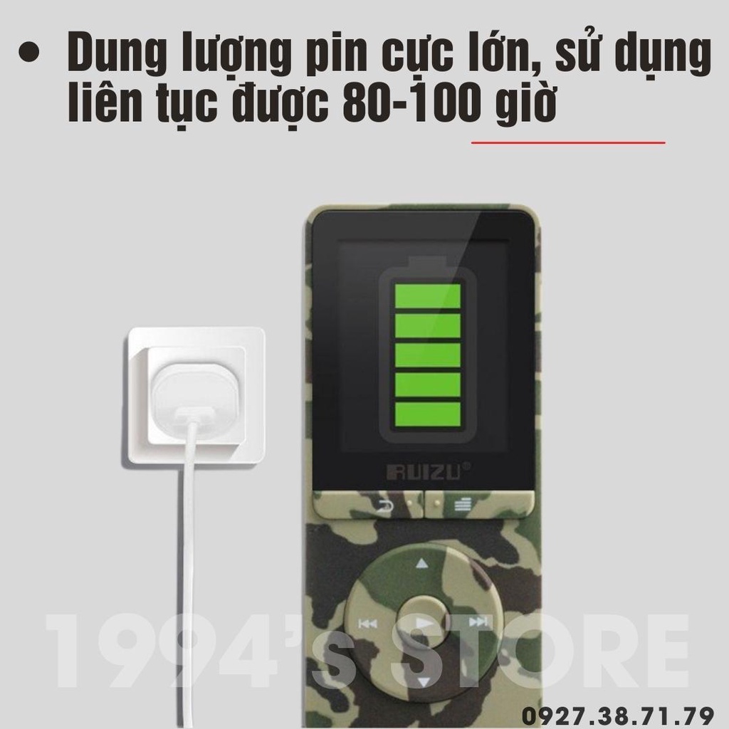 ✍️ RUIZU X02 có pin lithium dung lượng lớn có thể chơi nhạc lên tới 80 giờ.