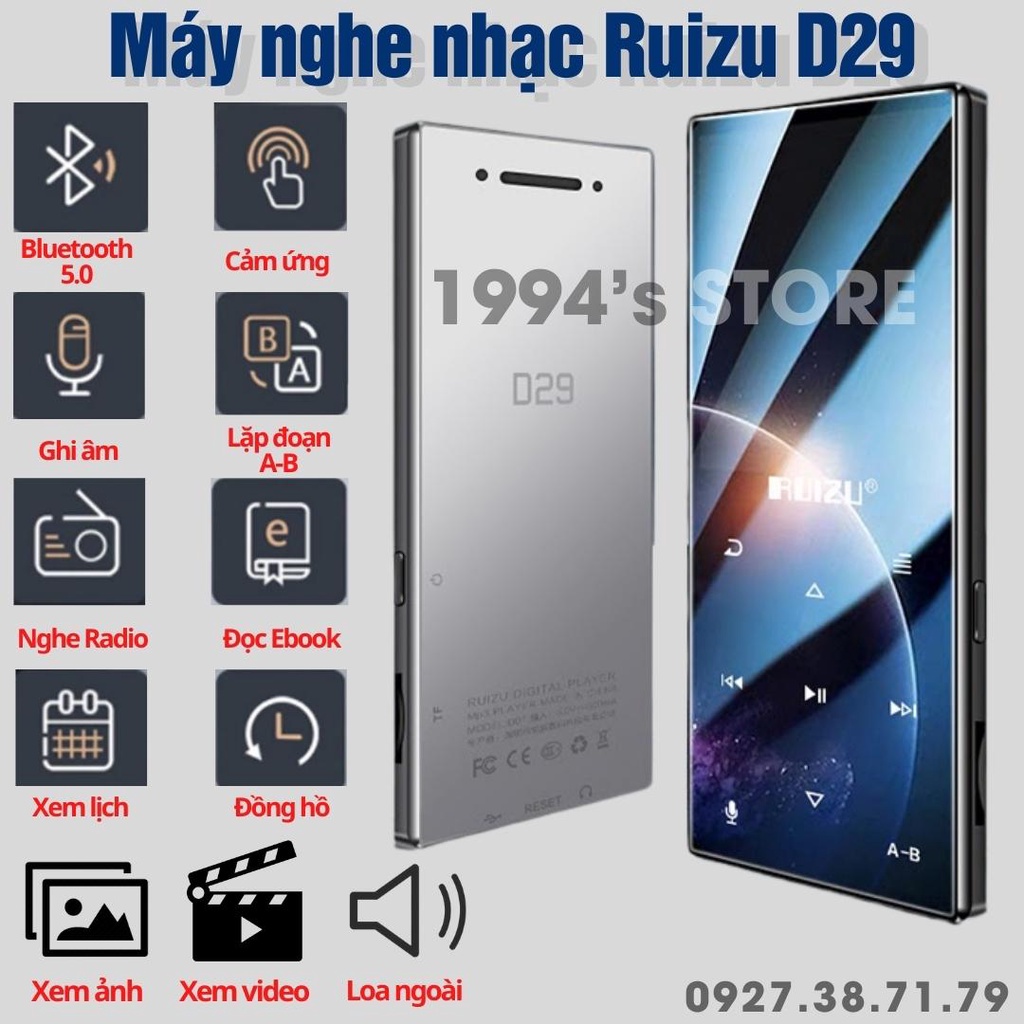 Giới thiệu (CÓ SẴN) Máy Nghe Nhạc RUIZU D29 Bluetooth 5.0 Hifi Lossless - Bản 2022 - Cảm ứng - Bộ nhớ 8Gb - Loa ngoài siêu lớn