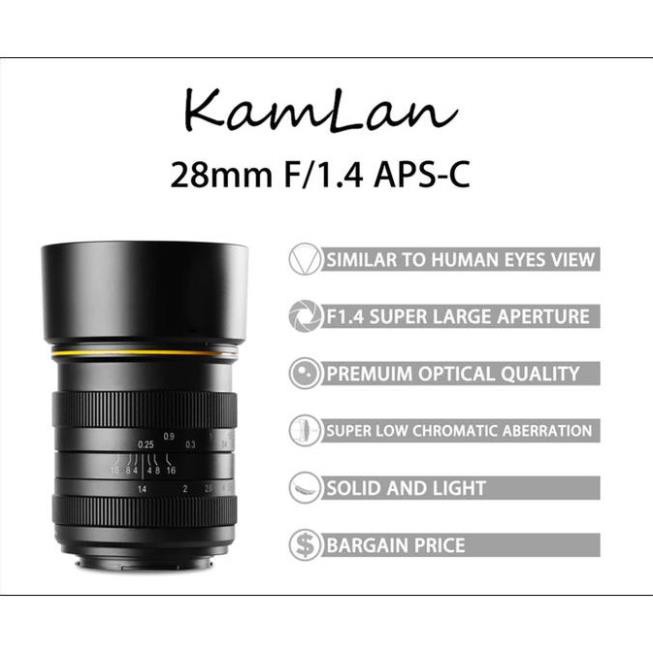 Cameras & Flycam > Ống kính || (CÓ SẴN) Ống kính Kamlan 28mm F1.4 dùng được cho các ngàm Sony E, M4/3, Fujifilm, Canon EOS MCòn hàng