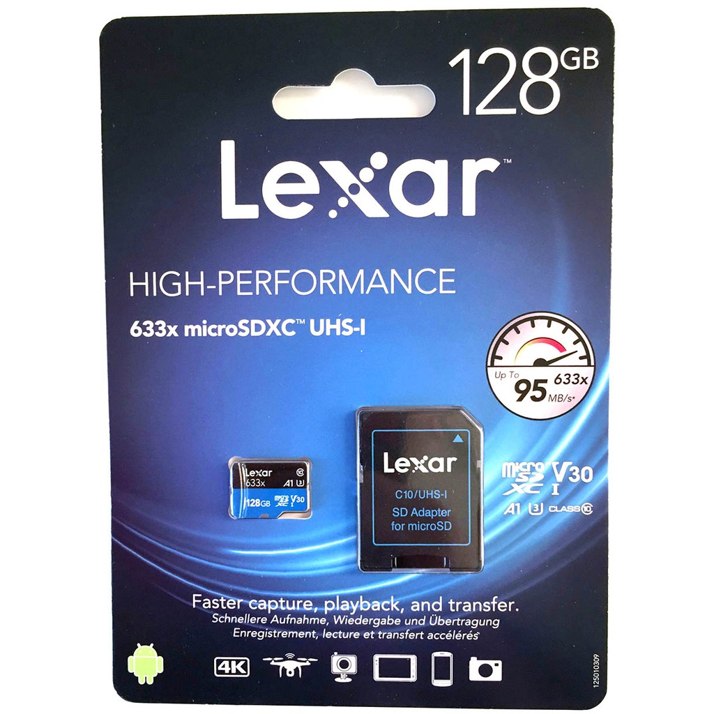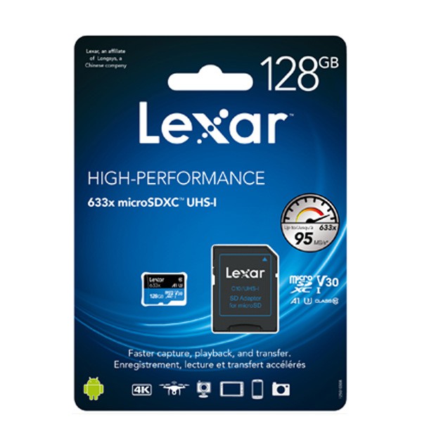 Giới thiệu (CÓ SẴN) Thẻ nhớ Lexar 128Gb 633x Micro SDXC UHS-l V30 - 95MB/s - Tặng kèm áo thẻ (SD Adapter)