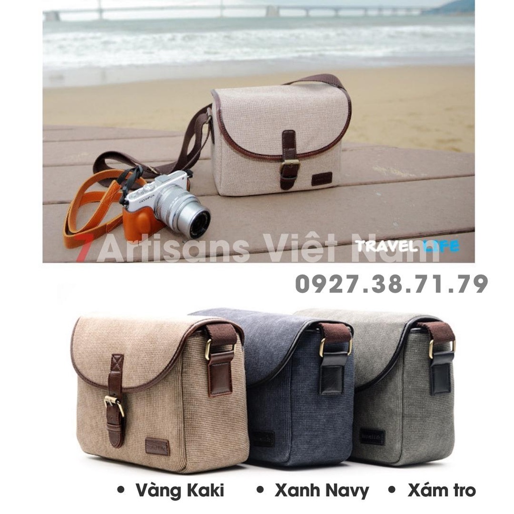 Túi máy ảnh chính hãng Tralvel Life :- Chắc chắn, gọn nhẹ có 3 màu xanh navi, vàng kaki và xám