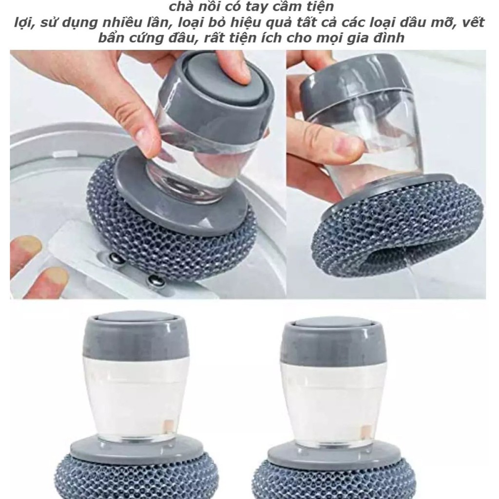 ✔️ Đây là một sản phẩm tiện ích được thiết kế kèm bình đựng xà phòng, giúp việc rửa chén, lau chùi dễ dàng hơn, tiết kiệm thời gian, chi phí trong việc cọ rửa đồ nấu nướng nồi