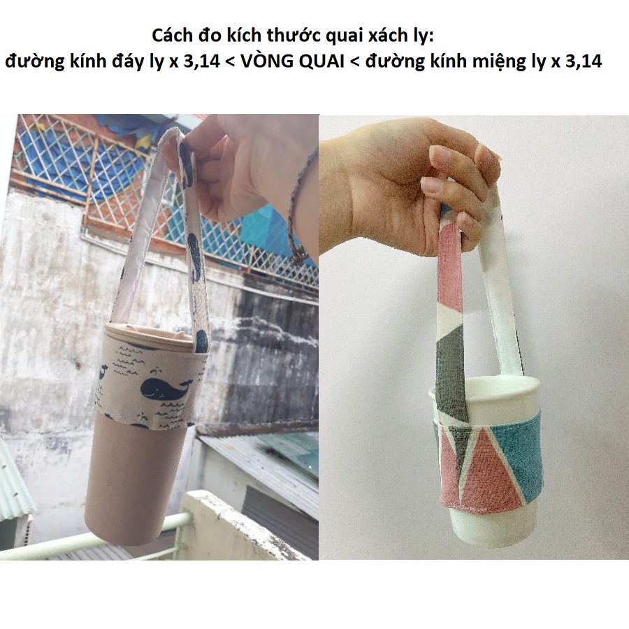 Giới thiệu [CÓ SIZE] Quai Xách Ly Vải Canvas Đựng Ly/Cốc Trà Sữa, Cà Phê, Ly Giữ Nhiệt,... Nhiều Hình 2 Lớp