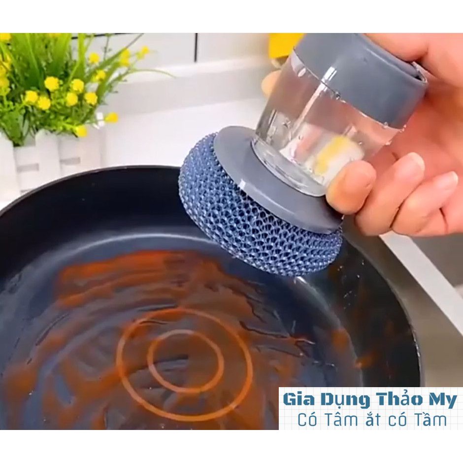 ✔️ Đây là một sản phẩm tiện ích được thiết kế kèm bình đựng xà phòng, giúp việc rửa chén, lau chùi dễ dàng hơn, tiết kiệm thời gian, chi phí trong việc cọ rửa đồ nấu nướng nồi