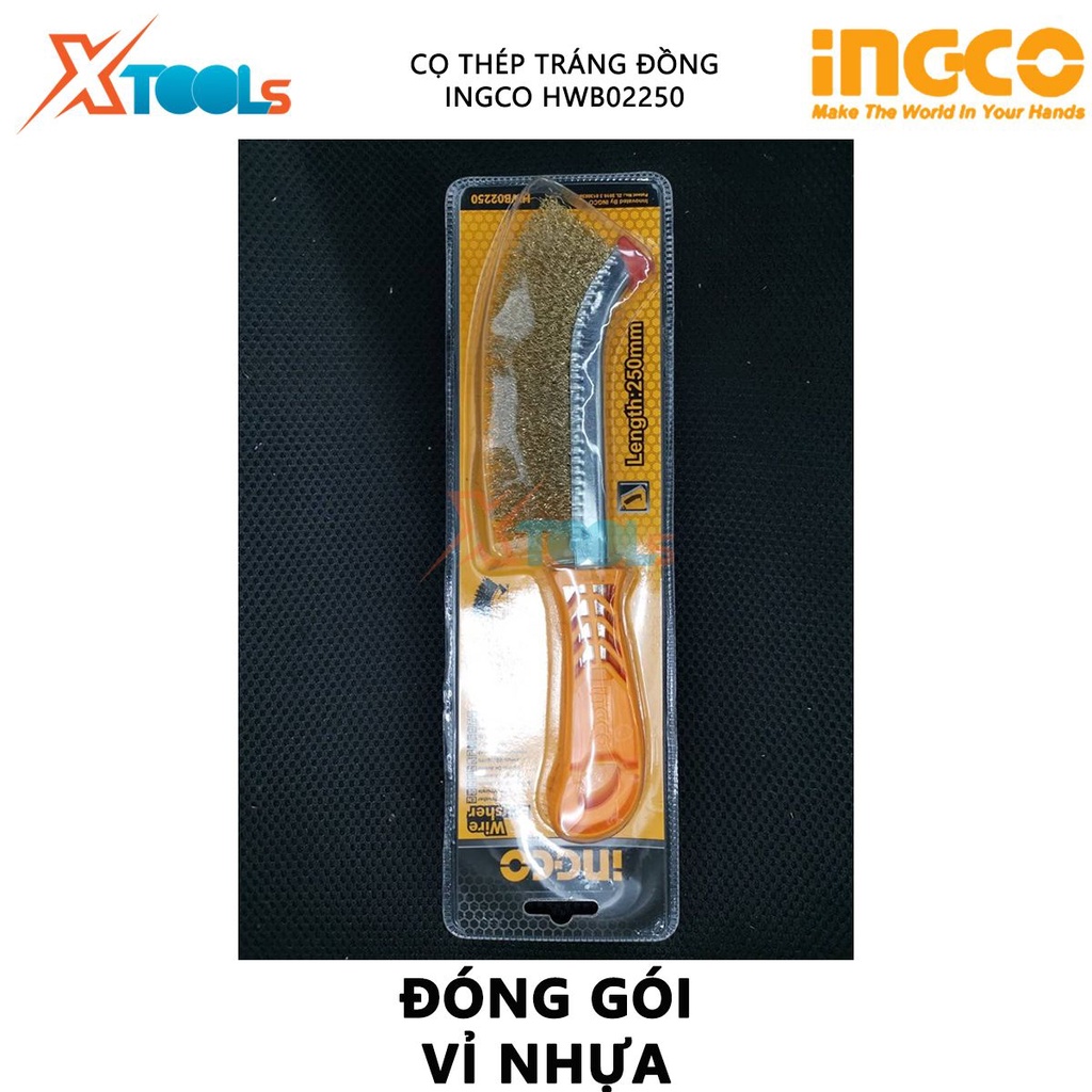 - Cọ thép tráng đồng INGCO HWB02250 là một loại cọ quét được làm từ chất liệu cao cấp, Chiều dài 250 mm, tay cầm bằng nhựa màu vàng chất lượng cao chuyên dùng để loại bỏ bụi bẩn, gỉ sắt, vảy sơn trước khi sơn…