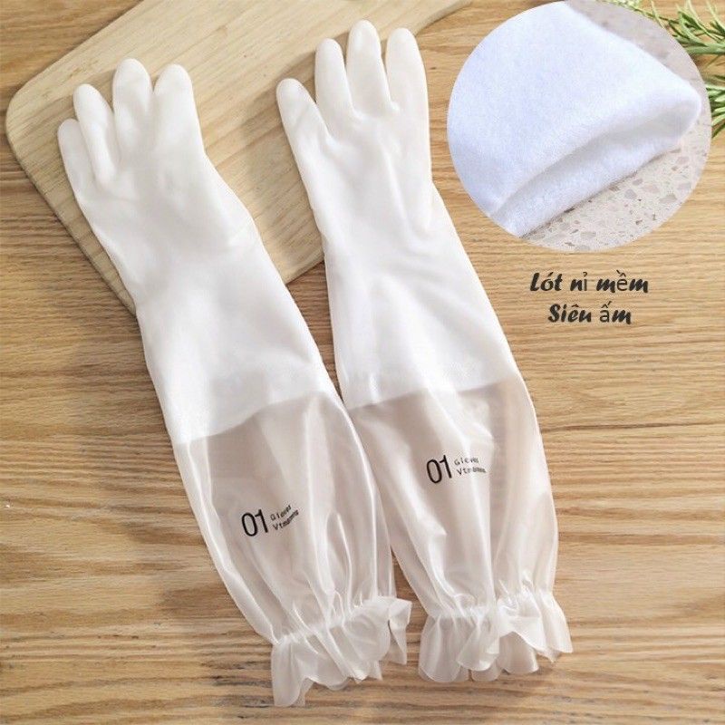 [ CÓ THUN ] cặp găng tay hươu silicon siêu dai rửa chén loại dài có thun chống tuột