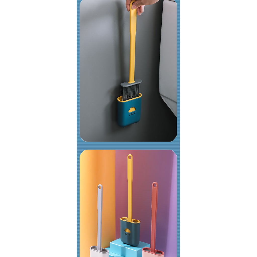 Bộ cọ toa lét cán dài đầu cọ bằng silicon mềm siêu sạch có kèm hộp đựng gọn gàng ngăn nắp MẪU MỚI 2021