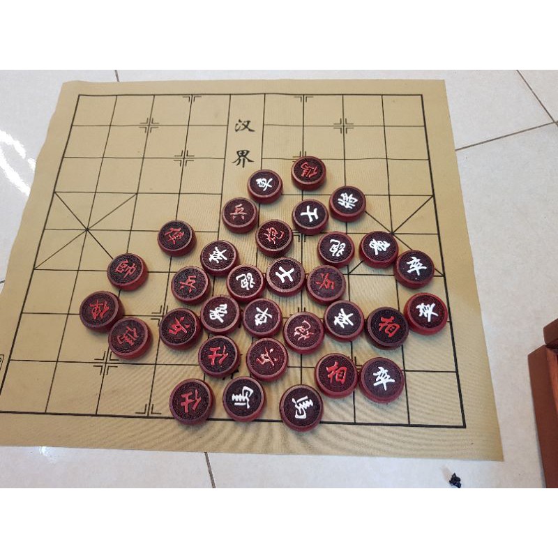 ----1 bộ cờ tướng kèm hộp và bàn bằng miếng da