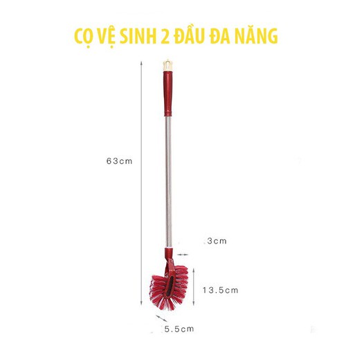Cọ vệ sinh 2 đầu có chiều dài 65cm, phù hợp cho việc cọ bồn cầu , cọ sàn nhà tắm cực sạch mà lại dễ dàng sử dụng.Đầu lông bàn Chải thiết kế thông minh, giúp chải sạch mà không làm xước bề mặt cần cọ .