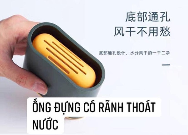 ✅ Cây cọ có ống giữ cọ có thể đặt dưới sàn hoặc dính siêu cường lực lên gạch men, kính hoặc gỗ, giúp nhà tắm thêm gọn gàng hơn