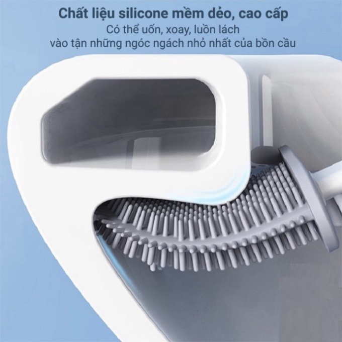 👉 Đầu cọ được làm bằng chất liệu silicon mềm dẻo, có thể uốn, xoay tùy ý, luồn lách vào tận những ngóc ngách nhỏ nhất của bồn cầu