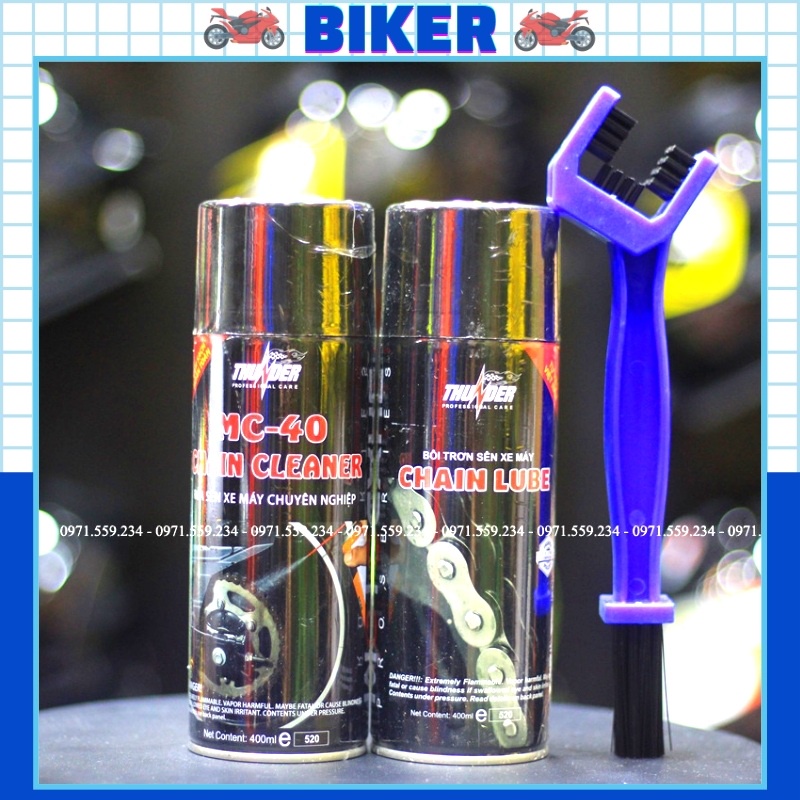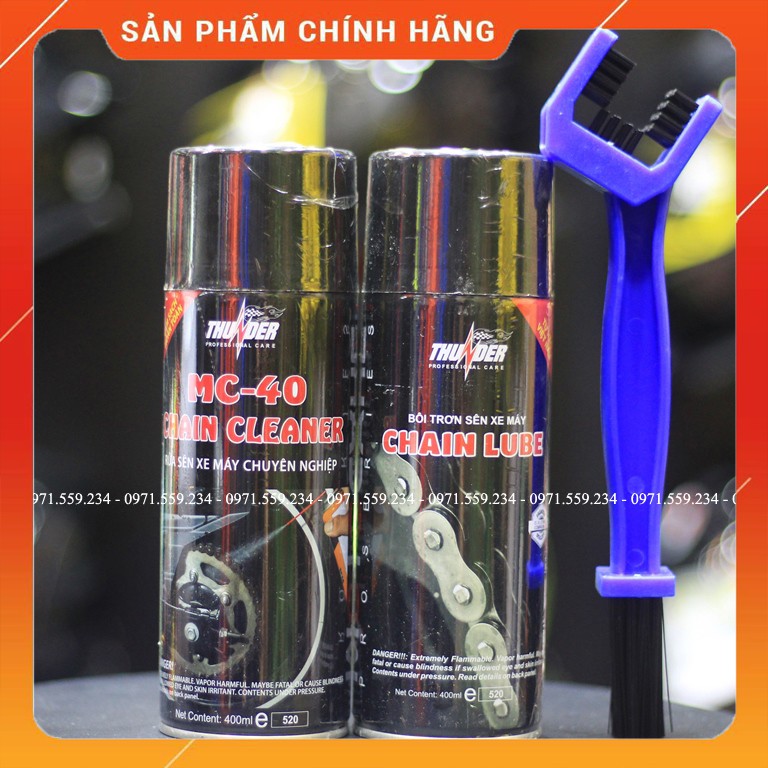 Giới thiệu [CÓ VIDEO] Combo vệ sinh sên MC-40 400ml, Bôi trơn dưỡng sên Thunder 400ml và bàn chải sên chuyên nghiệp