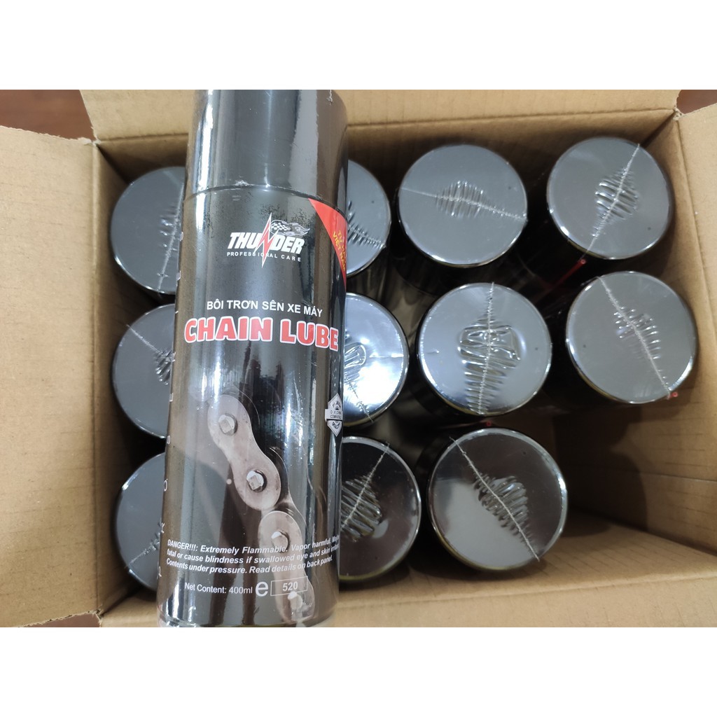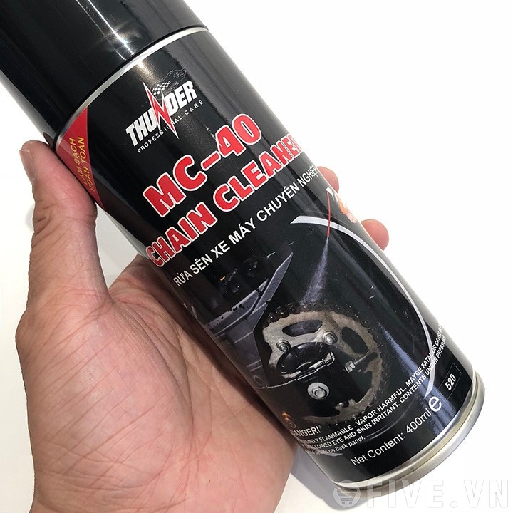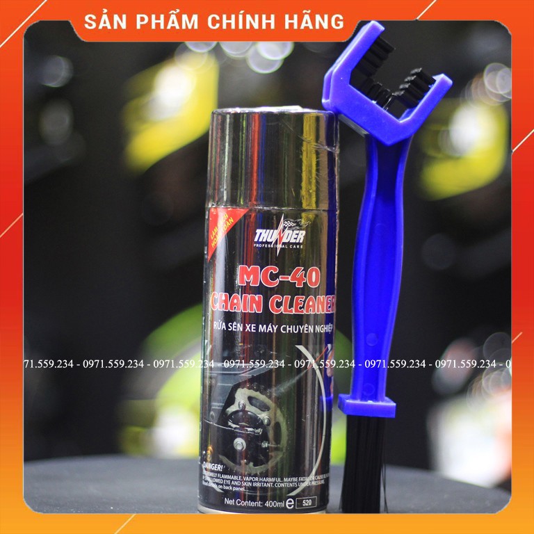 Giới thiệu sản phẩm Bộ sản phẩm vệ sinh sên MC-40 400ml, Bôi trơn dưỡng sên Thunder Chain Lube 400ml và bàn chải sên chuyên nghiệpSản phẩm bôi trơn sên xe máy với thành phần dầu gốc cao cấp và các chất phụ gia đặc biệt nhập khẩu từ Nhật giúp sên hoạt động êm ái, tránh những tiếng kêu xè xè đối với các loại sên trần qua đó gia tăng độ bền của sên, hạn chế vấn đề co giãn sên khi vận hành.