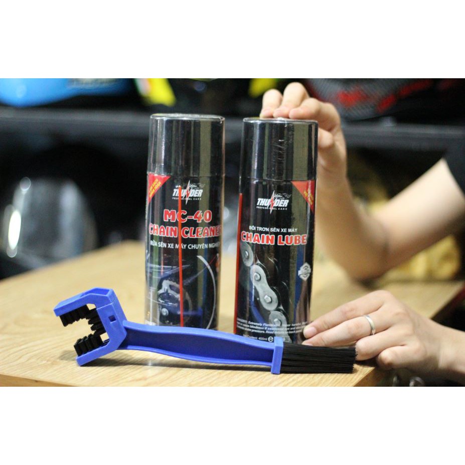 [CÓ VIDEO] Combo vệ sinh sên MC-40 400ml, Bôi trơn dưỡng sên Thunder 400ml và bàn chải sên chuyên nghiệp