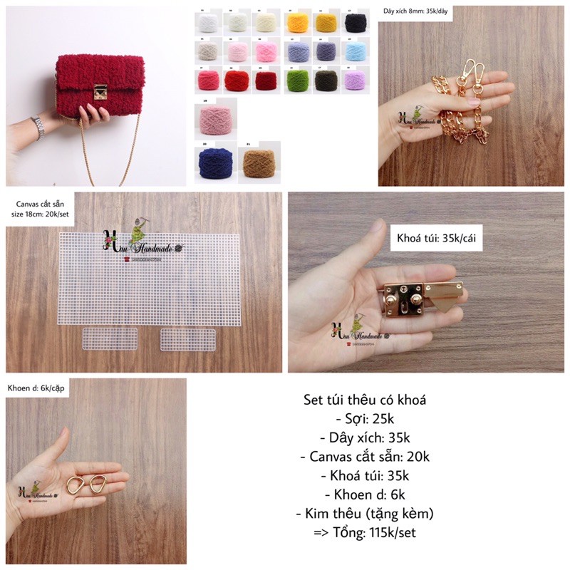 Sở thích & Sưu tầm > Dụng Cụ May Vá || (CÓ VIDEO HƯỚNG DẪN) Túi xách handmade tự đan, túi xách đeo chéo len xù có nắp khoá sậpCòn hàng