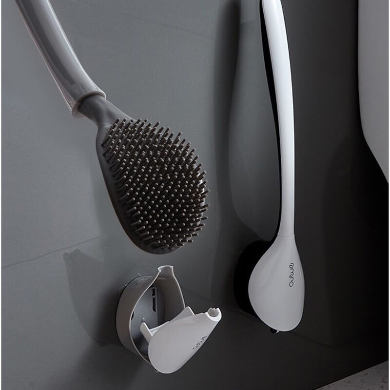 CỌ VUÔNG CAO CẤP - Chổi cọ bồn cầu, cọ nhà vệ sinh bằng silicon có giá đựng gián tường rất tiện dụng và sạch sẽ