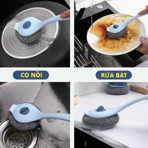 Cây Cọ Xoong Búi Sắt Có Tay Cầm Tiện Lợi - Cây cọ xoong nồi kèm búi lưới cán dài 27cm dụng cụ rửa chén bát chà kệ